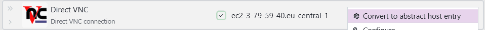 If you created a single direct connection at some point, e.g. a direct RDP connection, and are now deciding that you want to add more entries for the same host, e.g. a web service, you can quickly convert these entries into an abstract host in the context menu:
