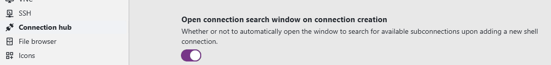 Especially when starting out with XPipe, you might have to search for available connections on many new systems that were just added. For these cases, it is recommended to first turn off the setting to automatically show the search dialog when adding a new connection: