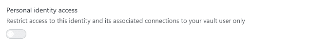 You can control whether this identity should be available only for your user or all users in a team vault. If you don't use a team vault, this option is greyed out.