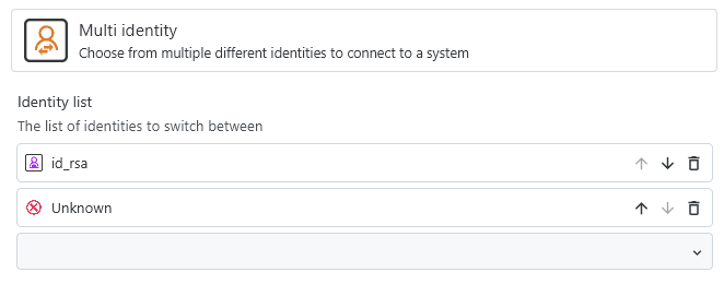 If you use a password manager to store credentials and maybe also SSH keys, then you can use password manager identities to retrieve this data directly. These identities can only be created if a password manager is configured in the settings. Whether password manager identities also support SSH keys it depends on the individual password manager and whether the agent integration is enabled in the settings menu.