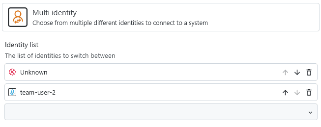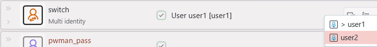 In a team vault environment, different team members might want to use different identities to connect to the same system. In contrast to the manual user switching, this can be done automatically in team vaults. A multi identity contains a list of available identities, and if any of those identities are marked as personal and are inaccessible to another user, then a multi identity will automatically filter those out.