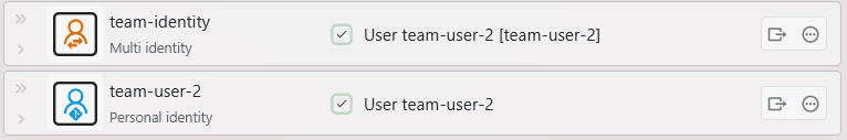 Since the team-user-1 identity is not available to the other user, it will be shown as Unknown. From the perspective of the other user, the multi identity will use their personal identity:
