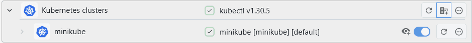 By default, XPipe will only look in the default kubeconfig file, use the default context, and use the default namespace when searching for connections. If you use other kubeconfigs, contexts, or namespaces as well, you can manually add to those via the add cluster button: