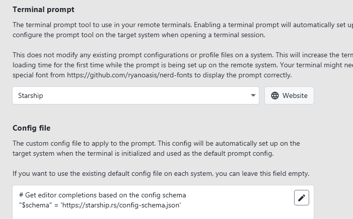 These prompts require installation on the remote system you access. When you enable a terminal prompt in the settings menu, XPipe will automatically download and install it on the system you connect to, granted that you marked the connection category to allow these kinds of modifications to a system. XPipe will also automatically set up the specified configuration on the remote system so that all your prompts are configured uniformly.
