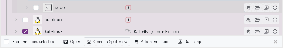 To use the split-view functionality, switch to batch mode and select the connections you want to open in the split view: