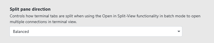The balanced direction will try to give each terminal pane an equal amount of horizontal and vertical space if possible. The other two strategies horizontal and vertical will always split along one axis, meaning that you can stack many terminal panes next to each other if you want.