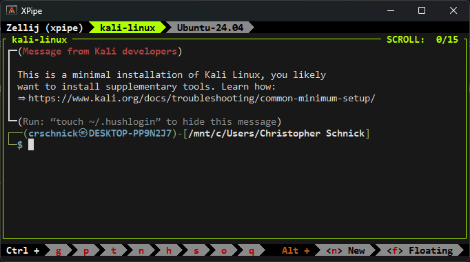Terminal prompt tools allow you to fully customize the prompts in your shell with additional information. XPipe supports the popular terminal prompts Starship, Oh My Posh, and Oh My Zsh. Here is how Starship looks like with the default configuration: