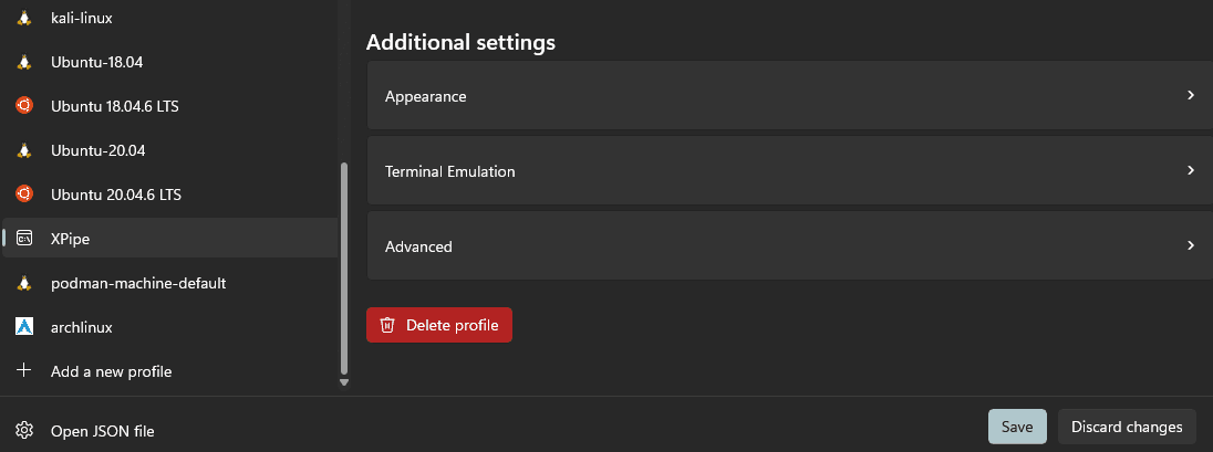XPipe creates a new separate profile for connections started from XPipe. This allows you to customize, for example, the appearance or other terminal settings for XPipe connections specifically. You can find the profile in the settings menu: