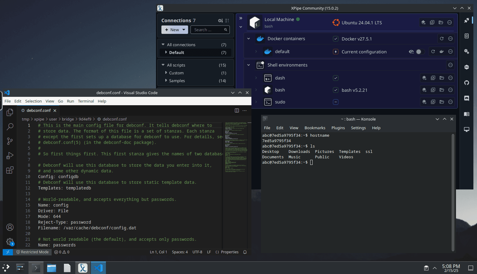 Since it makes sense to access your XPipe environment from the web, there is the so-called XPipe Webtop docker container image available. XPipe Webtop is a web-based desktop environment that can be run in a container and accessed from a browser via KasmVNC. The desktop environment comes with XPipe and various terminals, editors, and more tools preinstalled and configured.